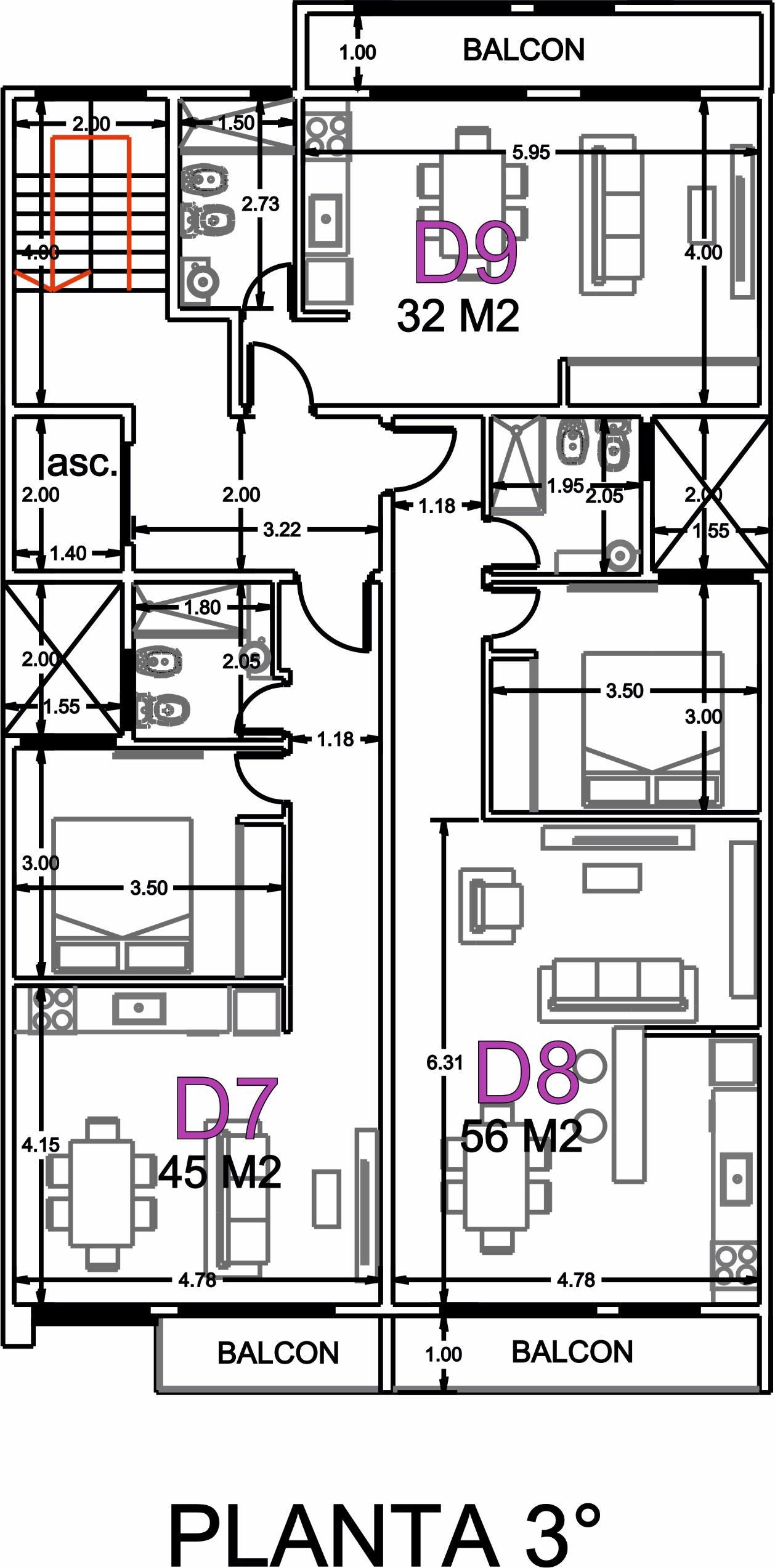 | 3° | Dpto A | DISPONIBLE | 1 | 1 | NO | NO | SI | NO | NO | 45 |