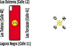 Ubicacion: Entre las calles Los Ostreros (ex Calle 12), Las Torcazas (ex Calle 41), Laguna Negra (ex Calle 11) y Las Totoras (ex Calle 40)