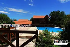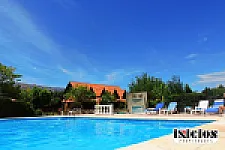 Amplio parque con vistas panorámicas de las sierras. Dos piscinas, una climatizada y otra natural. Amplio solárium.