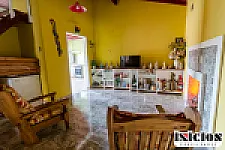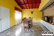 Una vivienda de aprox 155 m² que consta de una amplia sala de estar, un comedor diario con un hogar a leña, cocina amplia, tres dormitorios y un baño.
