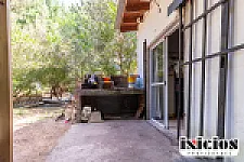 El exterior de la propiedad es uno de sus puntos más destacados, con un hermoso fondo que cuenta con una gran cantidad de distintos arboles, creando un entorno natural y privado.