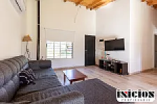 Cuenta con un amplio living comedor integrado a la cocina con barra desayunadora, tres dormitorios (uno en suite), un baño completo, garage semicubierto para dos vehículos, patio con parrilla y un gran jardín.