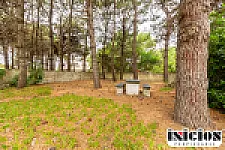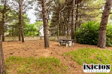 El fondo libre parquizado, rodeado de hermosos pinos, ofrece privacidad, contacto con la naturaleza y un entorno ideal para el descanso.