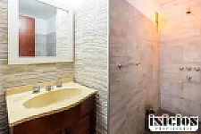 El baño se encuentra renovado a nuevo, con materiales modernos, revestimientos actuales y detalles contemporáneos que elevan la calidad general