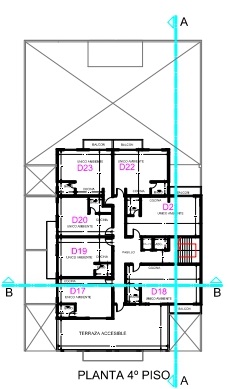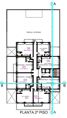 La estructura está preparada para seis pisos, y ocho departamentos de dos ambientes por cada piso.