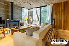Todo el ambiente está rodeado por amplios ventanales que inundan la casa de luz natural y permiten disfrutar del paisaje desde cualquier ángulo. La propiedad cuenta con dos dormitorios con placares, dos baños completos con antebaños y múltiples espacios de almacenamiento, ideales para alimentos, ropa y productos de limpieza.