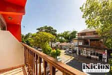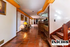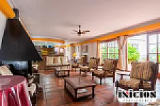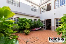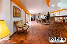 Cuenta con sala de recepción, conserjería, salón comedor y desayunador, y cocina con vajilla completa (para que la gente pueda venir a comer), más patios internos.