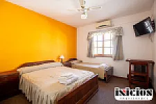 El Hotel consta de 26 habitaciones: 9 dobles; 11 triples; 3 cuádruples; y 3 familiares, cada una de ellas cuenta con dos habitaciones internas. Considerar reacondicionar colchones, ropa de cama y algunos televisores.