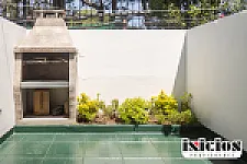 El triplex también induye cochera propia. En el patio trasero tiene una parrilla y cuenta con una bacha y mesada.